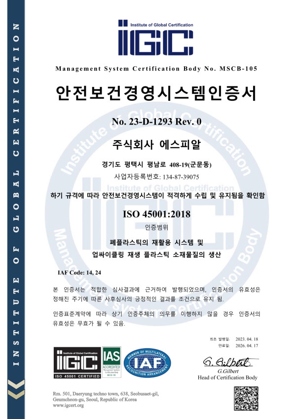 안전보건경영시스템인증서